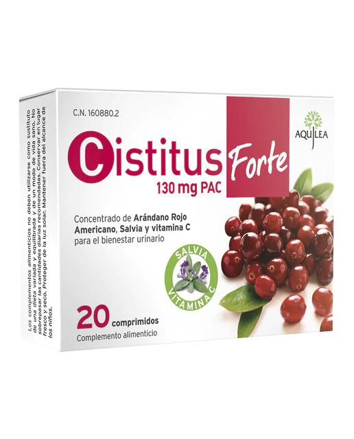 El Cistitus Forte es un producto que combina Arándano Rojo Americano, Salvia officinalis L. y Vitamina C. El extracto de Salvia officinalis L. (Ursolia®) es rico en ácido ursólico, que contribuye al bienestar del organismo, mientras que la Vitamina C favorece el funcionamiento normal del sistema inmunitario. Este suplemento está diseñado para ayudar al tracto urinario.