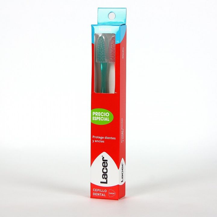 Lacer Technic Cepillo Dental Medio es un cepillo de dientes ideal para uso diario. Ofrece una higiene bucal completa para personas sin sensibilidad dental ni problemas de encías. Su mango anatómico tiene el cuello flexible sin memoria, lo que permite regular a gusto del usuario la presión del cepillado. Es de presión media y tiene forma de diamante. Sus filamentos son de 0,008 pulgadas de diámetro.