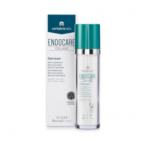 La crema ligera ENDOCARE CELLAGE GELCREAM, con textura en gel, actúa sobre los signos del envejecimiento cutáneo: arrugas, pérdida de densidad y textura irregular. Su textura fluida, no comedogénica, se adapta a todo tipo de pieles, incluso mixtas y grasas. Está formulada con IFC CAF Skin Stem Activation y Wharton Gel Complex®, tecnologías patentadas que actúan sobre las células madre cutáneas y favorecen la formación de colágeno, elastina y ácido hialurónico, proporcionando un efecto rellenador de arrugas. Además, combina RetinSphere Technology, que favorece la renovación de la piel para mejorar el tono. Testado bajo control dermatológico.