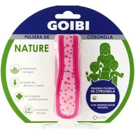 La pulsera Goibi Nature de citronela animal en color rosa es un antimosquitos diseñado especialmente para niños, que cuenta con un identificador infantil y una fórmula rica en citronela.